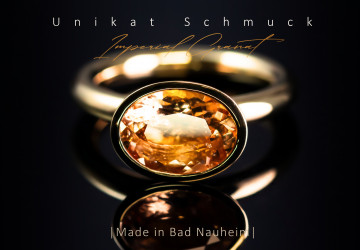 Ring in 750 Gelbgold mit Imperial Granat oval 3,72ct facettiert. Gefertigt in unserer Goldschmiede....